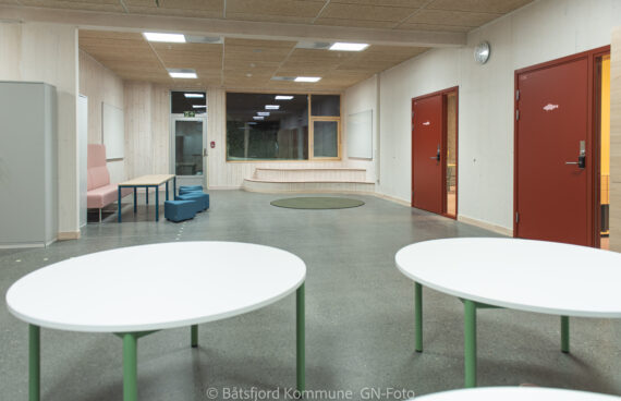 Båtsfjord nye skole er et stort og moderne undervisningsanlegg hvor alt fra grunnskole, videregående, bibliotek, kultursal og idrettsfasiliteter er samlet i ett bygg.